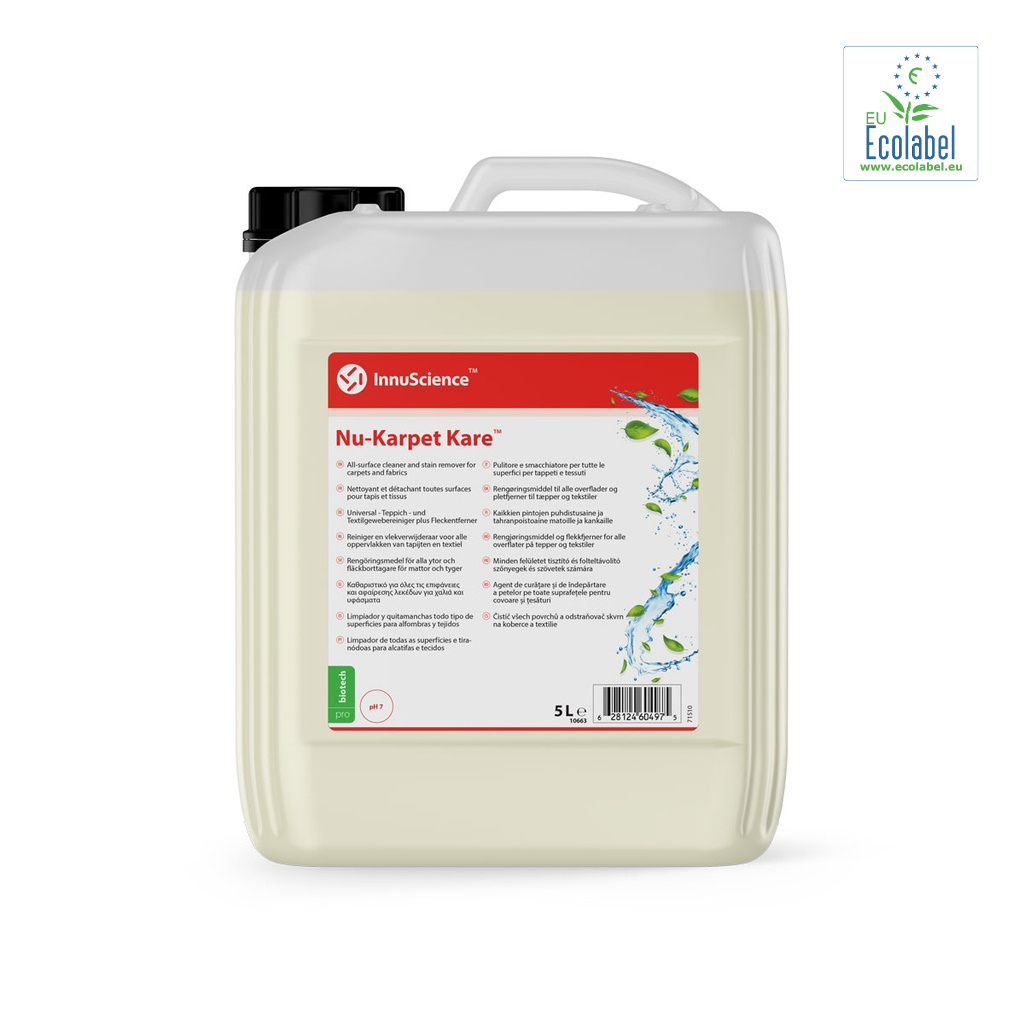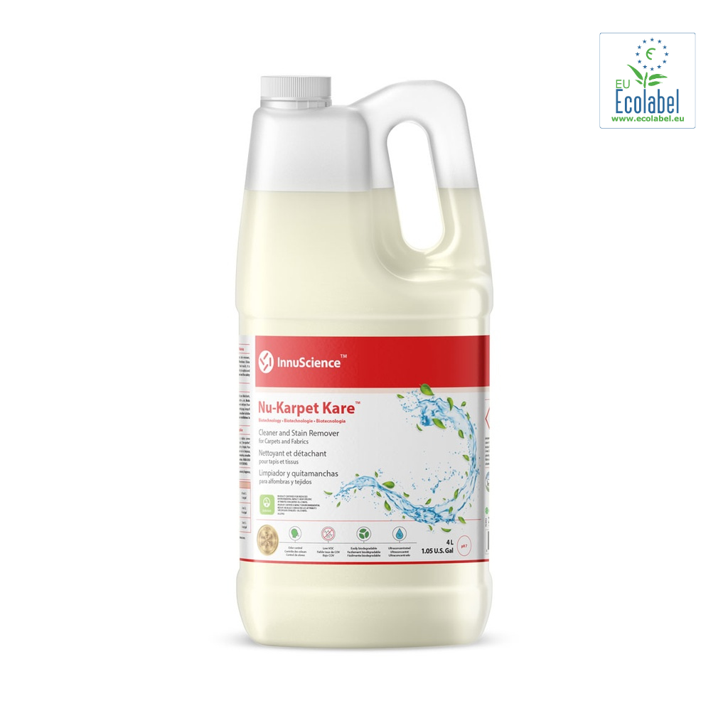 O Nu-Karpet Kare é uma solução biotecnológica para limpeza completa de carpetes e tecidos. Funciona como removedor de nódoas, shampoo, pré-tratamento e limpeza por extração/bonnet, ajudando também no controlo de odores.